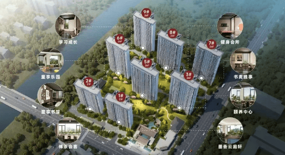 建筑设计:规划有 8 栋 21-26 层的高层住宅,外立面阳台选用玻璃栏板设计,营造出轻盈通透的视觉,辅以浅色多彩漆、高级灰真石漆,更显现代、轻盈。