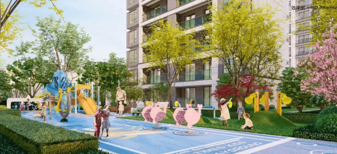 景观设计:社区规划全龄化活动空间,如健康跑道、儿童乐园等,为不同年龄段的业主提供休闲娱乐场所。