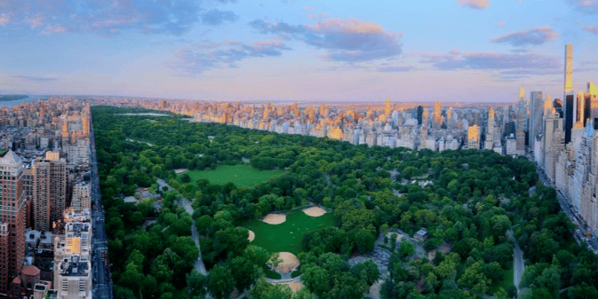 容积率低至1.6,绿化率35%,仅共10栋洋房+小高层住宅,小区楼栋两排平行布局,南低北高,中间规划园林景观,这种建筑南北分庭抗礼、中间园林一通到底的手法,与纽约中央公园如出一辙!
