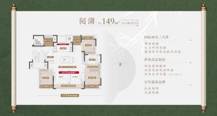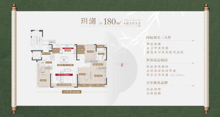 建面约 143㎡(四室两厅两卫):客厅采用大横厅设计,开间宽敞大气,采光面广,尽显奢华风范。连接的景观阳台视野极为开阔,可将小区园林景观的美景尽收眼底,或是眺望城市的繁华街景,让人心旷神怡。主次卧均设有飘窗,不仅增加了室内使用面积,还为业主提供了舒适的休闲角落,业主可在此阅读、晒太阳,享受独处的美好时光。双卫设计贴心实用,方便家庭成员日常生活,有效避免早晚高峰使用卫生间的冲突,让生活更加从容有序。此外,该户型在空间布局上更加合理,功能分区明确,各个区域之间相互独立又彼此联系,满足家庭多样化需求,无论是日常居住,还是接待宾客,都能应对自如。