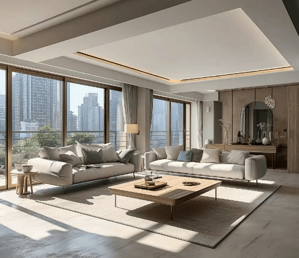 建筑外观:采用铝板 + 大面玻璃组合,米色搭配灰色的主色调,整体简约现代。
