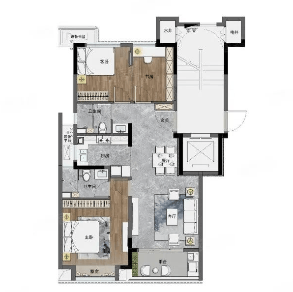 89平,三房两厅两卫,中间套