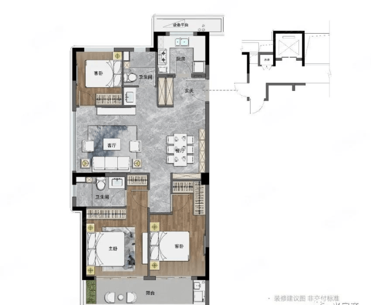 大老板 180平户型:四房两厅三卫,边套