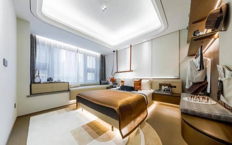 要知道市面上大部分次卧的进深在3.2-3.5米左右,家具摆放颇受牵制,而凤栖星澜这个进深,能让次卧更加舒展、独立,合格的尺度,使得书房放大方桌和书架后也不至于局促。