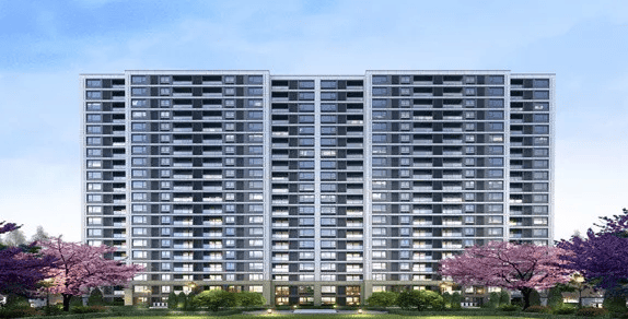 建筑规划:小区分为联排别墅区和高层区两部分,共有 5 栋高层和 18 栋联排别墅。