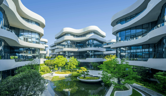 低密独栋现房:提供790-1900㎡的现房独栋办公空间,附赠庭院、露台及屋顶花园,私密性强,适合企业总部办公。
