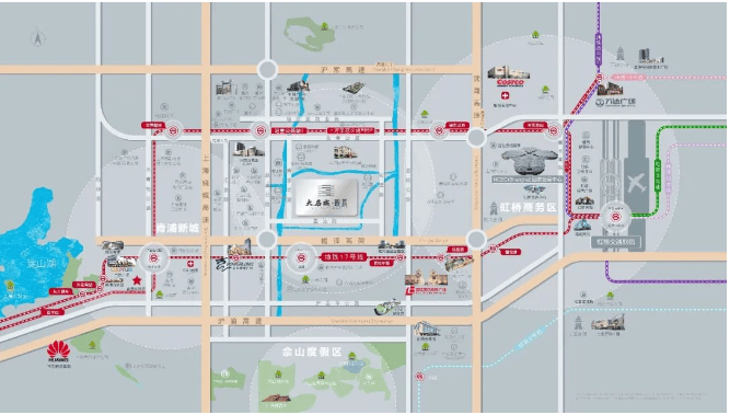 商业17号线沿线站站TOD(虹桥天地、龙湖天街、虹桥丽宝广场、蟠龙天地、万科天空之城、宝龙城市广场)、开市客、山姆会员店、百联奥特莱斯、合生新天地、重固菜市场、吉买盛生活广场、虹桥万科红生活广场、福贸路商业街、中建孚泉生活广场