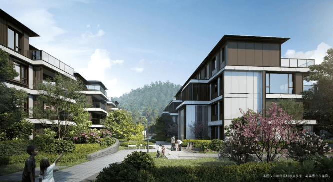 建筑设计:15 栋 4 层叠墅以多角度错落式布局融入湖畔山景,外立面采用中式坡屋顶与大面积玻璃幕墙,窗墙比超 60%,打造 “盛满阳光的玻璃盒子”,让建筑更好地亲近大地、融入自然,同时保障了楼栋采光与私密性。