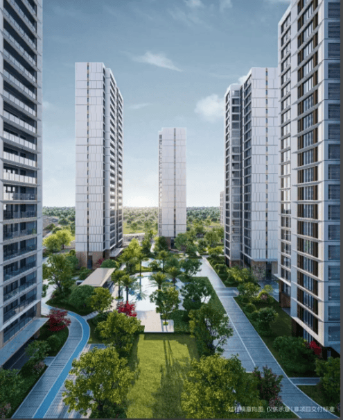 园林景观由杭州亚运村景观设计师宋淑华执笔,打造约 3.2 万方 “一轴一环七境” 景观空间,融合宋式园林文化。设有中轴景观带、约 600 米环形跑道,以及静谧花园、儿童乐园等七大主题景观区域。