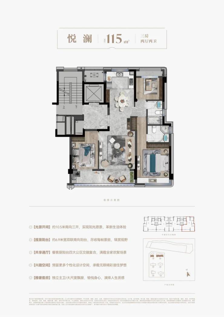 另外,拥享约10.5米朗阔面宽、约6.9米双联阳台、LDKG奢阔通厅等创新规划的建面约115㎡,与设计私享玄关、超13.5米朝南四开间、一体化餐客厅等建面约125㎡,营造一种别样沉浸式的丰盛意趣体验。