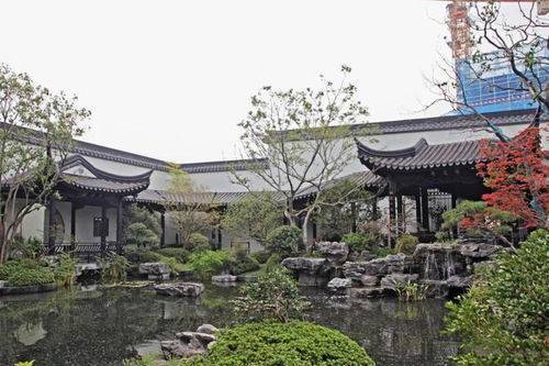 新中式风格:项目以王府中式住宅为设计理念,整个展示区的空间布局遵循儒家的传统思想——庄严与礼节,采用一轴三进的设计手法,中轴对称,序列严整,体现了中国人独有的阴阳平衡概念。