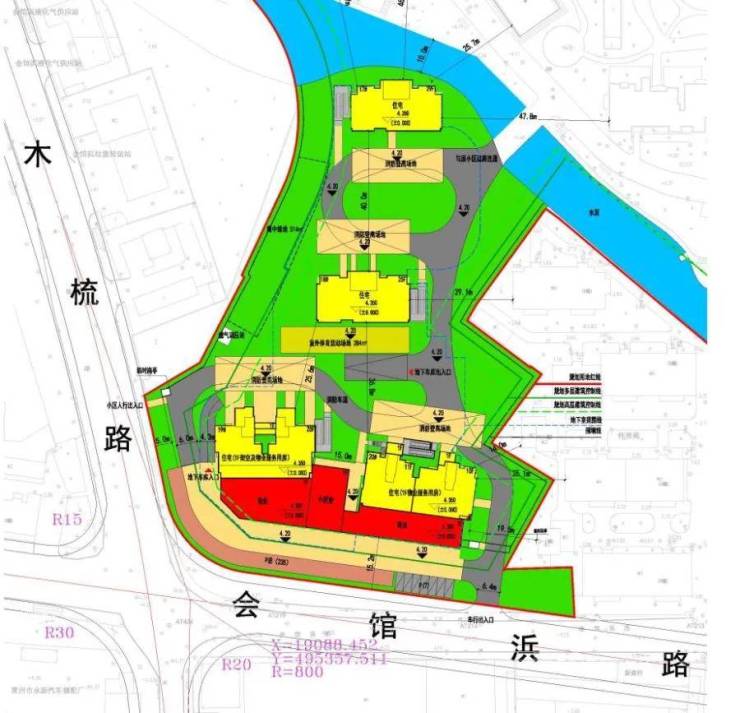 主大门的效果图中提前公布了案名为薛家芯·壹号,沿街设置有2F的沿街商铺和物业服务用房。