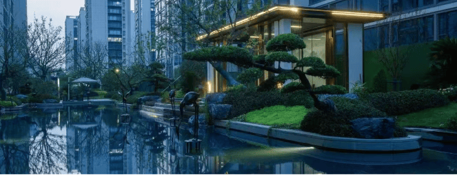 小区规划:园林以山水造景凝练湖山美学,将自然与生活融合。外立面遴选巨幕玻璃,搭配外挑屋檐,兼具现代通透感与东方贵雅格调。