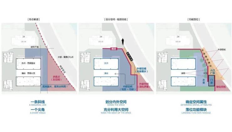 示范区选址距离城市干道≥100M,场地形态呈现尖锐三角形,景观将如何正确规划动线、合理利用空间,并且达到一定的昭示性?