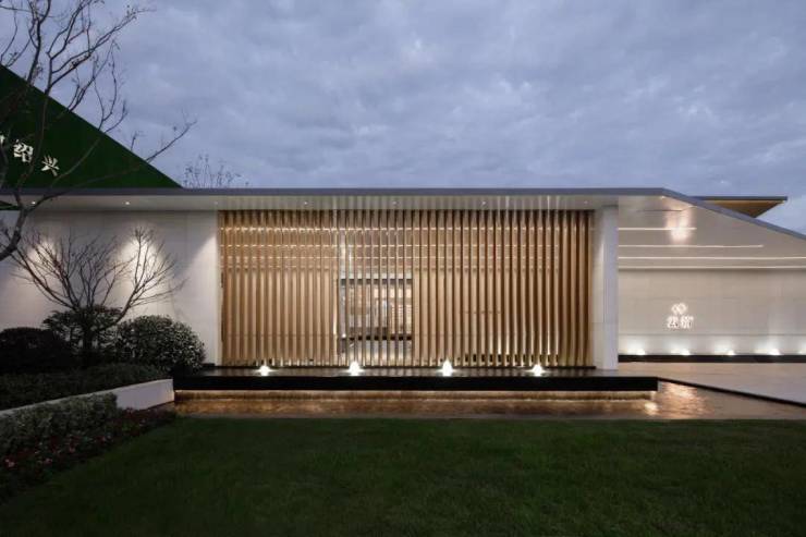 门廊顶部围合空间,营造步入内部空间前的完整仪式感,暗示空间的转换,从外部环境向建筑过渡。
