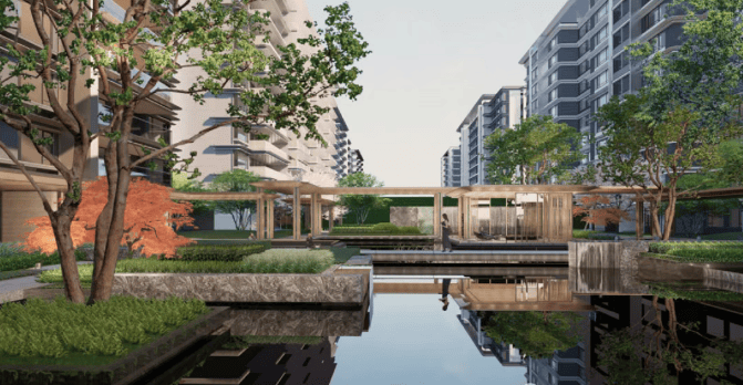 摒弃了常规中轴布局,采用游园式归家方式,巧妙地融合了自然与艺术,营造出一场流动的自然盛宴。