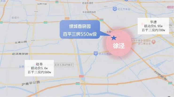 新房层面,500w出头的总价,也只能买到赵巷这样大虹桥下游板块,板块的能级是远不如徐泾的