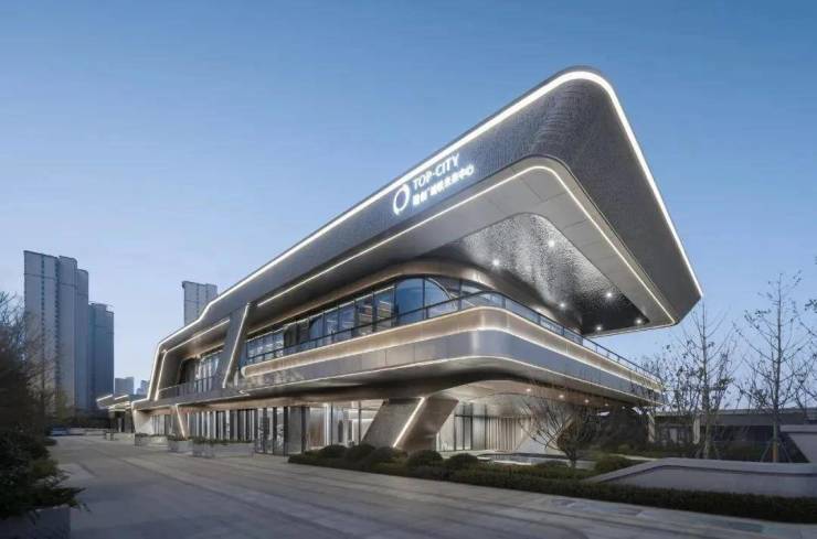 TOP CITY is located near Huishan High-speed Railway Station in Wuxi, occupying the sub-center in the west of the city - Huishan Urban Railway New Town Hub; Apply the streamline and dynamic to the building to show the future trend. Through the dismantling and dislocation of the blocks, the main use space, auxiliary space and community entrance space are created. The creation of flowing lines forms a unique visual identity that echoes the high-speed rail hub. The demonstration area is like a high-speed train heading towards the future.