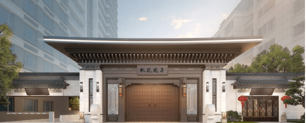 今天下午我来到项目现场,目前项目售楼处也已经整体搬迁,可以看到大门已经做好了,中式韵味明显,显得很气派。