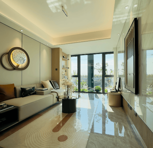 精装标准:精装产品装标不低于3000元/㎡,配备日立中央空调、威能地暖等一线品牌家居,细节设计贴心,如鞋柜精灵、美妆冰箱等,提升居住品质。