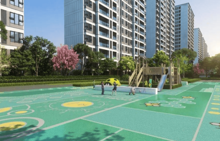 整体容积率约2.0,社区整体为现代风格建筑,打造“一街两轴两环四庭六园十一巷”的景观布局。
