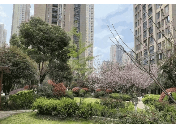 小区布局:已交付居住的分为 A、C、D 区,A 区共两栋楼,为塔楼结构;C 区两栋楼,为板楼结构;D 区 3 栋楼,为塔板结构。