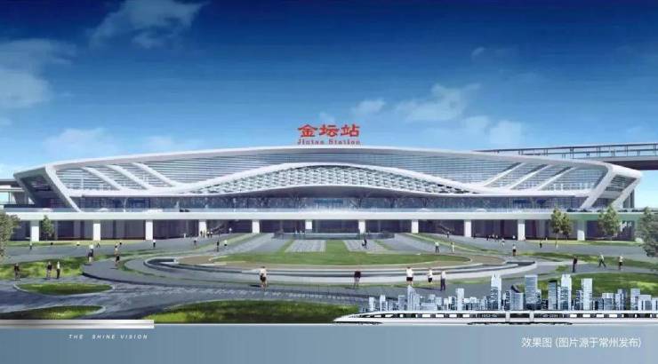 近期,南沿江城际铁路金坛站站房屋面钢结构网架施工完成,站房外观已完整呈现,金坛高铁枢纽站前广场建设效果图出炉。