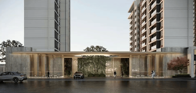 外立面设计:外立面为类公建化风格,整体采用 “真石漆 + 局部竖线铝板线条” 的立面材质组合,将现代美学与实用功能相结合。