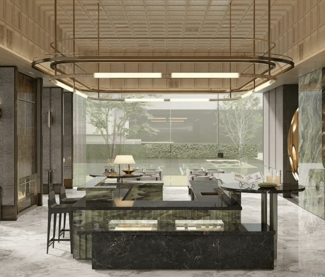 建筑设计:整体建筑风格现代简约,采用高品质建筑材料与精致的细节设计,外立面线条流畅,通过大面积玻璃与简洁的建筑轮廓,塑造出时尚大气的社区形象。