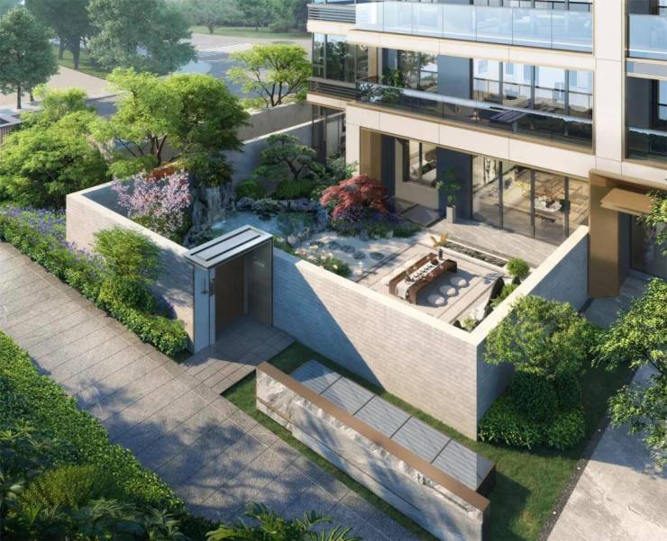 嘉宸府部分一楼为带实体围墙院落花园的底复设计。