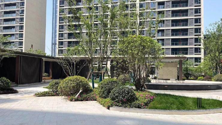 建筑与园林:特邀上海日清建筑设计院设计,外立面采用玻璃幕墙 + 铝板线条,呈现出现代简约的建筑风格。园林景观方面,打造了还忆游廊,沿水岸设置,空间体验丰富;还规划有两大邻里会客厅,设置了观景平台、树阵广场、阳光草坪等,为居民提供了休闲交流的场所。