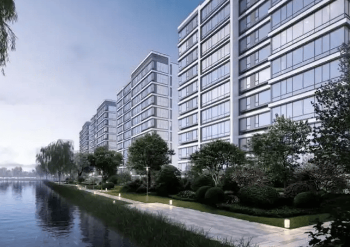 核心指标:总占地约6.5 万㎡,总建面约23.74 万㎡;容积率2.48,绿化率35%;共 23 栋(11 栋 11 层小高层、12 栋 18 层中高层),总户数1260 户;车位配比1:1.45(1848 个车位,人车分流);外立面为大面积中空 LOW-E 玻璃 + 金属铝板 + 质感涂料,岛屿式园林设计,含阳光草坪、滨水步道、童趣乐园、健身区。