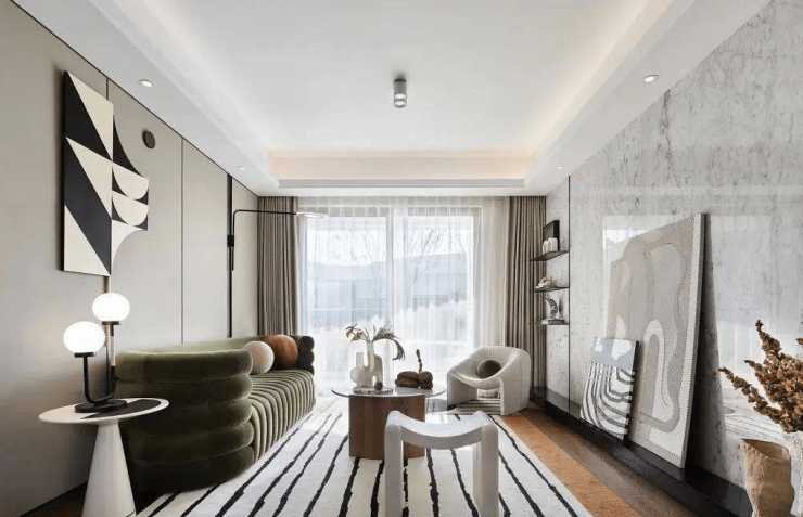 坚持“去风格化”产品标准,以大面玻璃栏板+横向铝型材线条的极简雅净,深色搭配局部香槟色系的美学风格,为太仓专筑现代国际艺术建筑群。