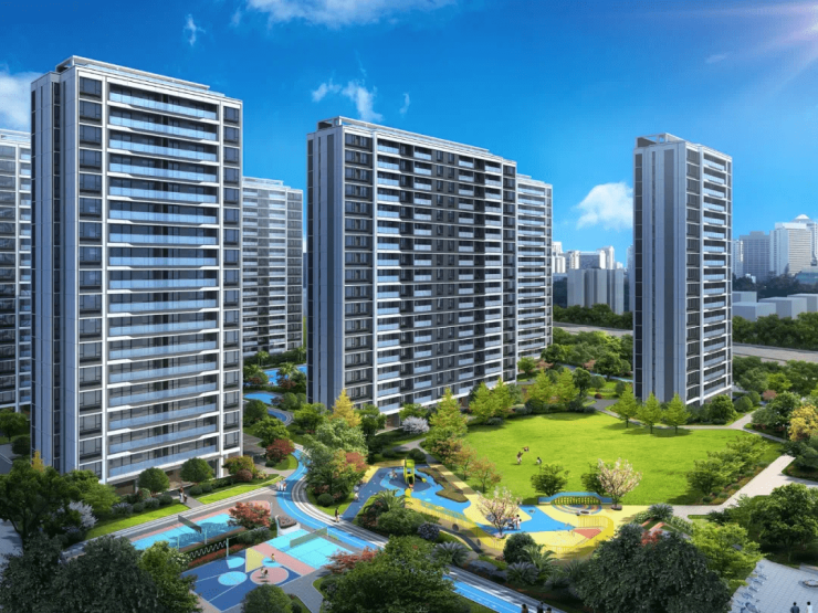 景观体系:以 “双轴、三园、五巷” 为主题,打造全龄化活动空间,涵盖儿童游乐区、健身步道及中央景观轴。