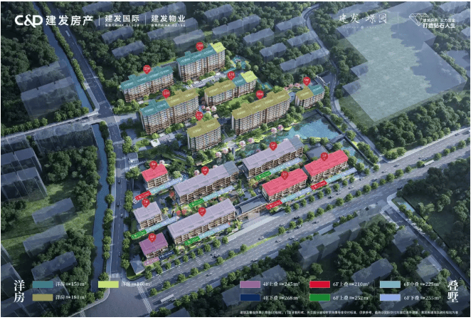 洋房:建筑面积约140-180㎡,主力户型约180㎡,采用LDKG一体化设计,南向四面宽达17.2米,实得率高达105%,配备全屋智能系统与中央净水软水系统。