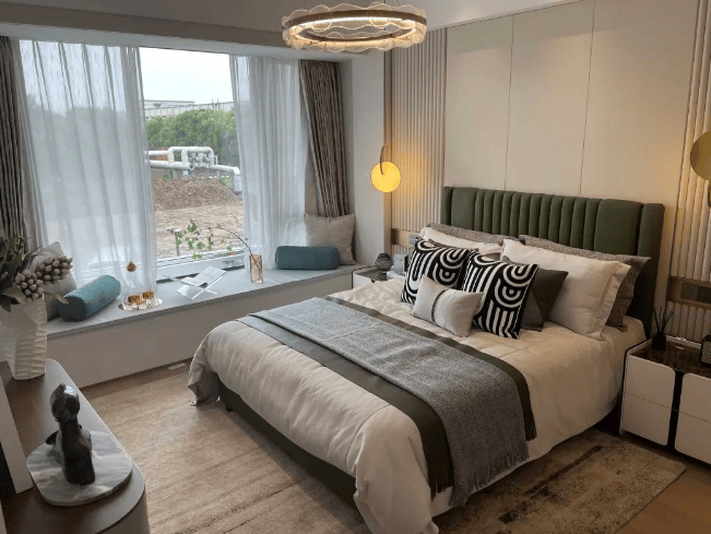 户型设计:户型设计方正实用,空间利用率极高,有效减少了面积浪费。多数户型实现南北通透,保证室内空气流通顺畅,采光效果极佳,让阳光能够充分洒入每一个房间,时刻保持室内明亮温暖。动静分区明确,动区的客厅、餐厅、厨房紧密相连,构成宽敞的公共活动区域,方便日常生活与亲友相聚;静区的卧室与书房则相对独立,为休息和学习提供安静私密的空间。客厅通常连接南向景观阳台,不仅拓展了室内活动空间,还能让业主尽情欣赏社区内的优美景色。例如 [X]㎡户型,[X] 开间朝南,采光充足,客厅与餐厅一体化设计,使空间更加开阔大气;厨房采用 [X] 型设计,操作台面充足,烹饪流程顺畅便捷。[X]㎡户型空间更为宽敞,卧室面积合理,部分主卧带有独立卫生间和衣帽间,极大地提升了居住的私密性与舒适度 。