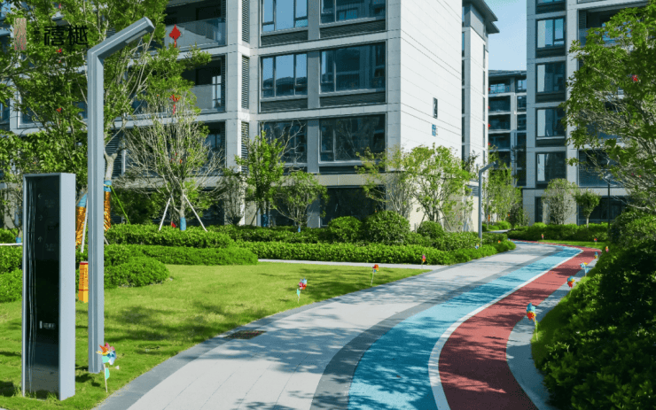 内部配套:岛屿式园林(丛生乌桕等乔木 + 多层次灌木花卉)、阳光草坪、滨水休闲区、儿童游乐区、成人健身区、社区泛会所,人车分流保障安全。