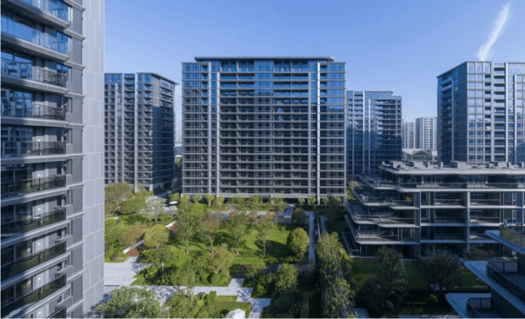 像杭州高端豪宅全国闻名,近年来都是采用铝板+玻璃幕墙外立面,未来势必也会成为优质资产的标配。