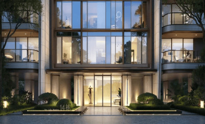 建筑与景观设计:由知名设计团队 gad 操刀,采用双曲面陶板、仿铜锈蚀合金板等高端建材,打造 “风帆曲线” 外立面,融入自然现代主义风格。以 “钱湖十景” 为灵感打造灵动森系景观,通过 T 型溪谷景观手法,将场地划分为多个组团,让每一栋楼都临水而居,实现景观 “平权化”。