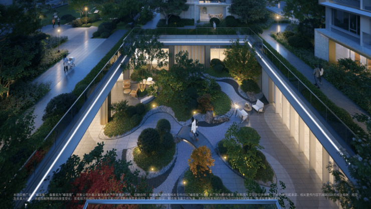 三进式园林,连接下沉庭院的架空层,各式植被打造出的颇具趣味的景观小品,生活在这样的环境中,怎能不让人对未来美好的生活又多一份憧憬。