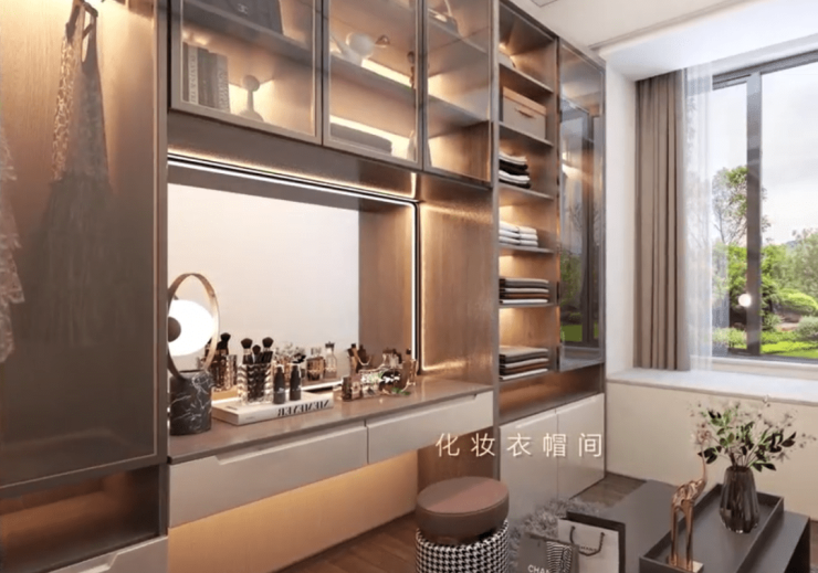 北向次卧是灵活的X空间,可以是书房,也可以是女士独立的衣帽化妆间。如果一家三口入住,更可以并入主卧做全套房设计。