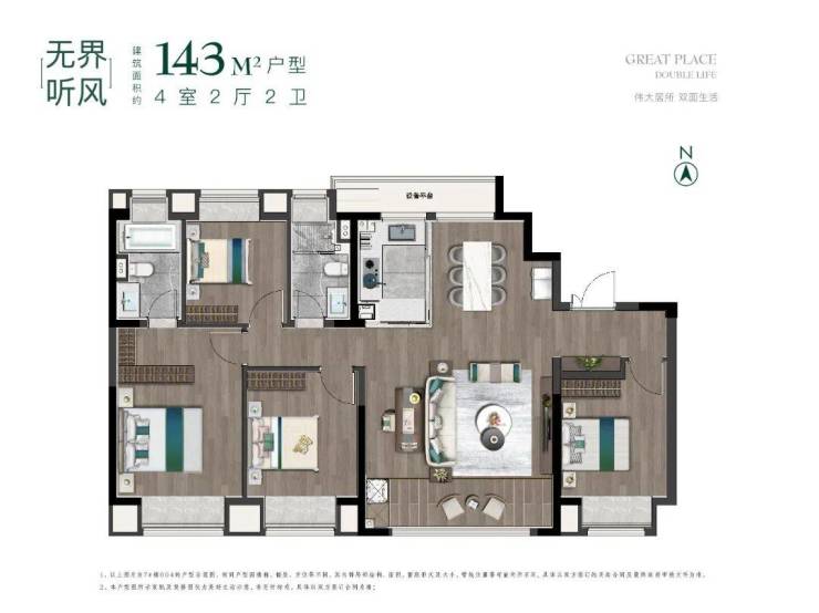 建面约143㎡,4室2厅2卫