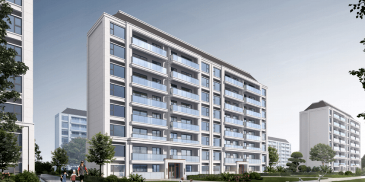 建筑设计:建筑风格为法式风格,立面材料为局部石材、真石漆、保温一体板及 LOW-E 中空玻璃,整体色调为经典的法式米白色搭配灰色坡屋顶,透露出法式优雅高贵的质感。深研建筑生长之道,参考法式筑墅蓝本,打造出庄严、中轴对称的外观,高而尖的灰瓦坡屋顶设计利于排水,也满足住宅日照间距标准。