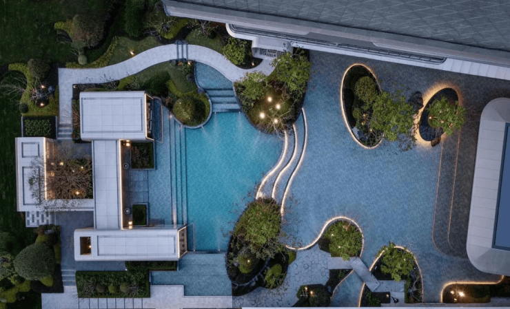 ❖中央水景:抬高设计,搭配周边空间场景,恰到好处地与自然亲密互动