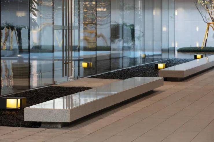 基于场地的特殊形态与周边环境的关系,景观根据建筑平面布局和人行动线,着重打造各场景下视线的对景关系,搭建景观布局的骨架,真正做到移步易景、步移景异。