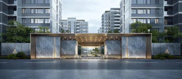 出入口以星空为设计灵感,采用顶部全穿孔铝板,以“高品质”的付出,带给业主高贵优雅的归家感受。