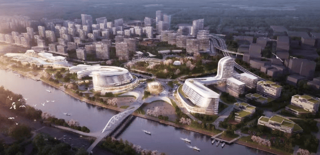 建筑设计:将东方哲学的大道至简与西方极简主义合而为一,选用大面积玻璃作为建筑主型材,营造简约、轻盈、现代的城市界面。