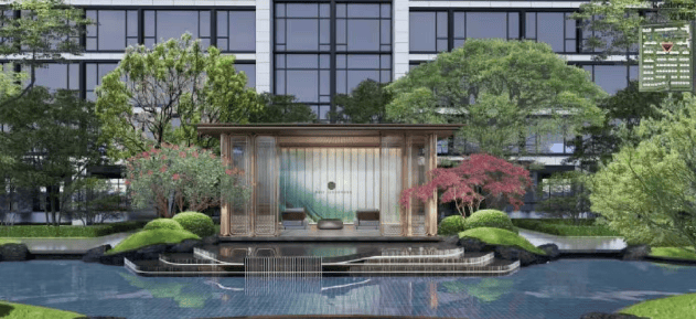 景观营造:以 “咫尺山水” 为灵感,将湖城山水之意与现代造园技艺融于一体,规划 “双轴八境” 的园林景致,还以大面积水系作为主元素,串联中央会客厅、童趣乐园等景观组团,打造可游、可赏、可憩的东方雅奢度假式园林。