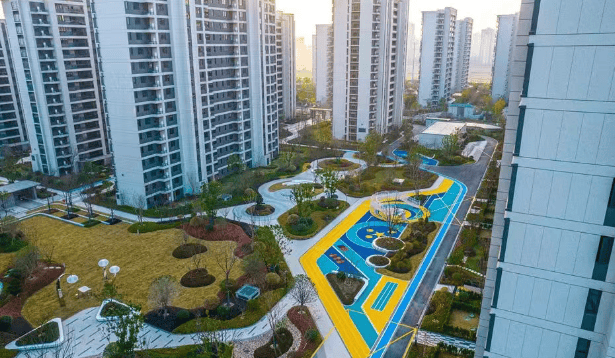 景观设计:打造了 “一环二轴五境” 的园区景观。“一环” 指约 700 米的健身步道,环绕小区景观带;“二轴” 即南北向星河大道和东西向芳华大道,贯穿各个生活场景;“五境” 则沿归家动线层层递进,营造出不同的风景。