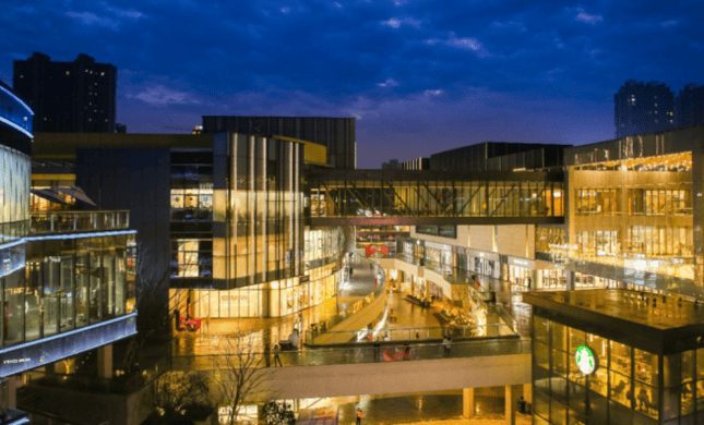 公共空间:打造了南北两大超级中庭,设有极具美学气质的中庭会客厅,融入了大面积水景,其中央美池以彩色玻璃马赛克铺就,面积约 480㎡。